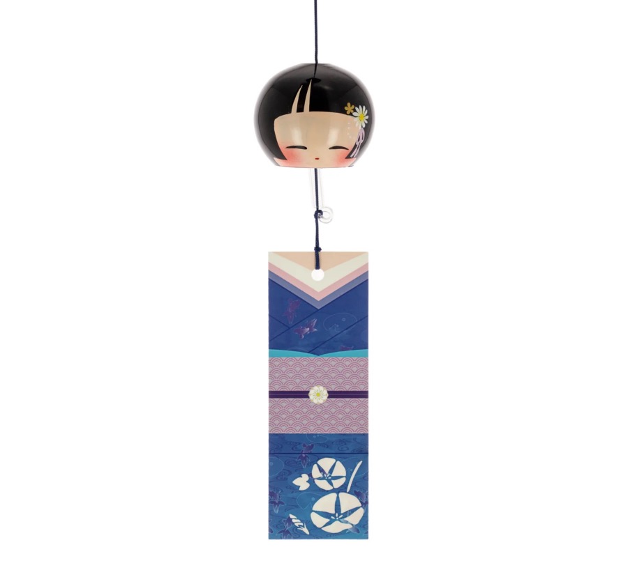 Traditionnellement décorée de fleurs, plantes ou poisson rouge, évoquant l'été, cette petite cloche accompagnée de sa girouette est modernisée d'une version délicate d'une kokeshi, la poupée traditionnelle en bois japonaise. Son design évoque la douceur et la simplicité de cet artisanat ancestral.